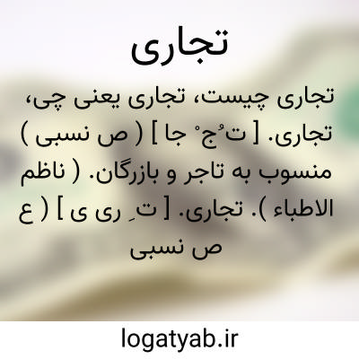 تجاری. [ ت ُج ْ جا ] ( ص نسبی ) منسوب به تاجر و بازرگان. ( ناظم الاطباء ).