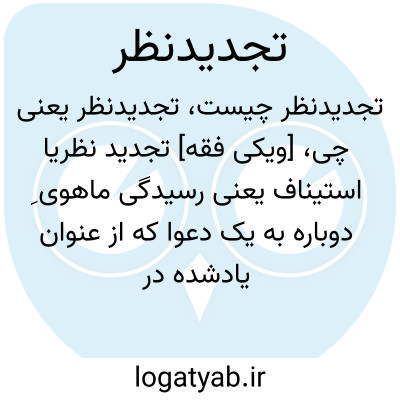 [ویکی فقه] تجدید نظر (فقه). تجدید نظریا استیناف یعنی رسیدگی ماهوی ِ دوباره به یک دعوا که از عنوان یادشده در باب قضاء سخن رفته و احکامی بر آن مترتّب گشته است.