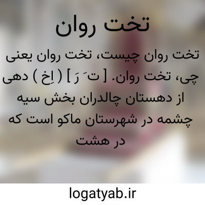 تخت روان. [ ت َ رَ ] ( اِخ ) دهی از دهستان چالدران بخش سیه چشمه در شهرستان ماکو است که در هشت هزارگزی باختر سیه چشمه و سه هزارگزی باختر شوسه سیه چشمه به کلیساکندی قرار دارد. دامنه ای است سردسیر و 79تن سکنه دارد. آب آن از چشمه و محصول آن غلات و شغل اهالی زراعت و گله داری است. صنایع دستی آنان جاجیم بافی است و راه ارابه رو دارد. از راه ارابه رو زیوه بالا، به سعدل اتومبیل می توان برد. این ده از دو محل تشکیل یافته که پانصد گز با یکدیگر فاصله دارند و به تخت روان بالا و تخت روان پایین مشهورند و سکنه تخت روان پایین 43 تن است. ( از فرهنگ جغرافیایی ایران ج 4 ).