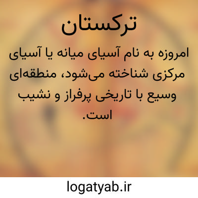 باج ترکستان نه باج ترکمان آورده ام.خاقانی.و او را اسیر بترکستان بردند ملک بخارا از نظام بیفتاد و وهنی فاحش ظاهر شد. ( ترجمه تاریخ یمینی چ 1 تهران ص 115 ). و معالجت خویش جز هوای ترکستان نشناخت او را در عماری بر صوب ترکستان ببردند. ( ایضاً ص 121 ). ابوجعفرذوالقرنین را بدین سفارت تعیین فرمود و بر دست او حملی از تحف خراسان و مجلوباب ترکستان به فخرالدوله فرستاد. ( ایضاً ص 129 ).