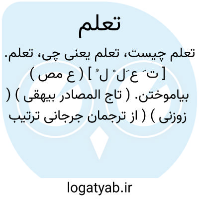 تعلم. [ ت َ ع َل ْ ل ُ ] ( ع مص ) بیاموختن. ( تاج المصادر بیهقی ) ( زوزنی ) ( از ترجمان جرجانی ترتیب عادل بن علی ). آموختن و دانستن. ( منتهی الارب ) ( ناظم الاطباء ). از کسی آموختن. ( غیاث اللغات ) ( آنندراج ). مطاوعة تعلیم است، گویند علمته فتعلم. ( از اقرب الموارد ): و چون ایام رضاع به آخر رسید در مشقت تعلم و تأدب افتد. ( کلیله و دمنه ). و چندانکه اندک مایه وقوف افتاد... به رغبتی صادق و حرصی غالب درتعلم آن میکوشیدم. ( کلیله و دمنه ). و رنج تعلم هرچه فراوانتر تحمل نیفتد در سخن که شرف آدمی بر دیگر جانوران بدانست این منزلت نتوان یافت. ( کلیله و دمنه ).و رجوع به تعلیم و اساس الاقتباس چ مدرس رضوی ص 344 شود. || استوار کردن کار را. ( منتهی الارب ) ( ناظم الاطباء ) ( از اقرب الموارد ). و یقال: تَعَلَّم بلفظ الامر بمعنی اعلم و اذا قیل لک اعلم ان زیداً خارج قل علمت و اذا قیل تعلم لاتقل تعلمت ُ و هی من النواسخ قال تعلم شفاء النفس قهر عدوها فبالغ بلطف فی التحیل و المکر. ( منتهی الارب ) ( ناظم الاطباء ). هو فی موضعاعلم و هو مختص بالامر کقوله: تعلم انه ُ لا طیر الاعلی متطیر و هو الثبور. ( اقرب الموارد ). و به فتح اول وثانی و لام مشدد مفتوح در این صورت صیغه امر است بمعنی بیاموز از باب تفعل. ( غیاث اللغات ) ( آنندراج ).