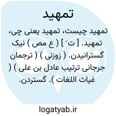 تمهید. [ ت َ ] ( ع مص ) نیک گسترانیدن. ( زوزنی ) ( ترجمان جرجانی ترتیب عادل بن علی ) ( غیاث اللغات ). گستردن. ( منتهی الارب ) ( دهار ) ( آنندراج ) ( ناظم الاطباء ) ( از اقرب الموارد ). || هموار و نیکو کردن کار را. ( منتهی الارب ) ( غیاث اللغات ) ( آنندراج ) ( ناظم الاطباء ). راست کردن: و ترفیه درویشان و تمهید اسباب معیشت... به عدل متعلق است. ( کلیله و دمنه ). و نیز شاید بود که کسی را برای فراغ اهل و فرزندان و تمهید اسباب معیشت ایشان به جمع مال حاجت افتد. ( کلیله و دمنه ). و کوشش اهل علم در ادراک سه مراد ستوده است: ساختن توشه آخرت و تمهید اسباب معیشت. ( کلیله و دمنه ). هر دو به تقریر این حال و تمهید این قاعده پیش ایلک خان رفتند. ( ترجمه تاریخ یمینی چ 1 تهران ص 184 ). در ضبط احوال و کفالت امور و سیاست جمهور و تمهید بساط معدلت و تقریر مصالح مملکت یدبیضا نمود. ( ترجمه تاریخ یمینی ایضاً ص 312 ). در ترتیب و تبجیل قدر و تمشیت کار و تمهید رونق او بهمه غایتی برسید. ( ترجمه تاریخ یمینی ایضاً ص 438 ). || عذر نهادن. ( زوزنی ). عذر گسترانیدن. ( منتهی الارب ) ( آنندراج ) ( ناظم الاطباء ) ( از اقرب الموارد ).