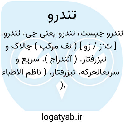 تندرو. [ ت ُ ] ( ص مرکب ) تندروی. ترشروی را گویند. ( برهان ) ( آنندراج ) ( از فرهنگ رشیدی ) ( شرفنامه منیری ). زشت و ناخوش رو و خشمناک. ( ناظم الاطباء ):