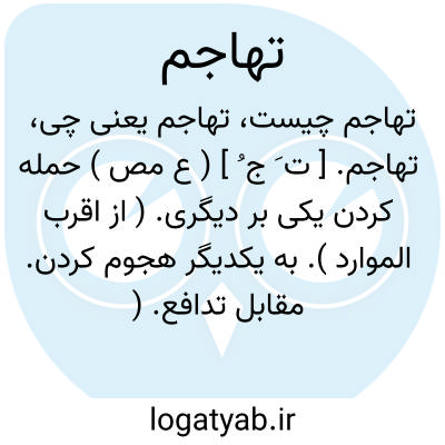 ۱- ( مصدر ) بانبوه در آمدن ناگاه آمدن در تاختن هجوم بردن حمله کردن بیکدیگر. ۲ - ( اسم ) هجوم یورش. جمع: تهاجمات.