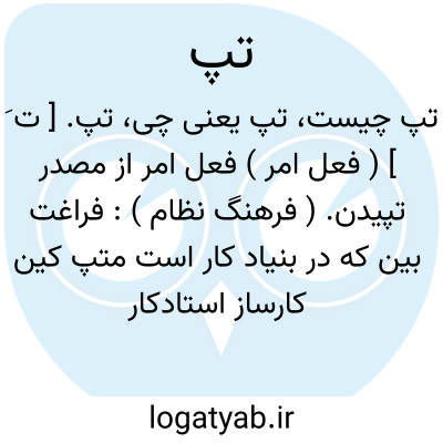 تپ. [ ت َ ] ( فعل امر ) فعل امر از مصدر تپیدن. ( فرهنگ نظام ):