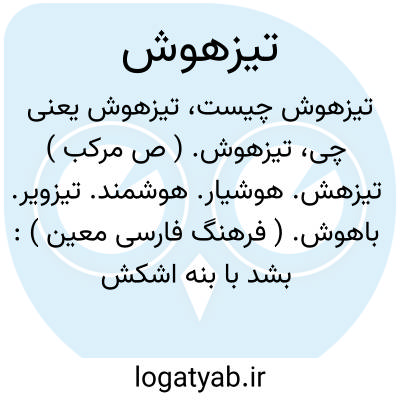 تیزهوش. ( ص مرکب ) تیزهش. هوشیار. هوشمند. تیزویر. باهوش. ( فرهنگ فارسی معین ):