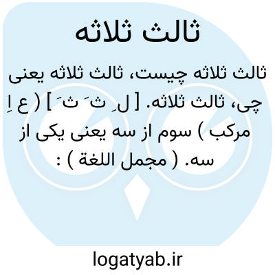 ثالث ثلاثه. [ ل ِ ث َ ث َ ] ( ع اِ مرکب ) سوم از سه یعنی یکی از سه. ( مجمل اللغة ):