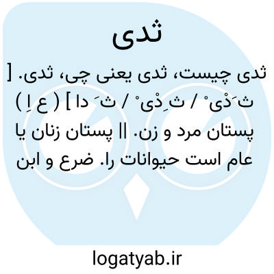 ثدی. [ ث َدْی ْ / ث ِدْی ْ / ث َ دا ] ( ع اِ ) پستان مرد و زن. || پستان زنان یا عام است حیوانات را. ضرع و ابن حاج گوید که پستان مردم را ثدوة گویند و پستان بهائم را ضرع. ( غیاث اللغة ). ج، اَثد، ثُدی، ثِدی.
