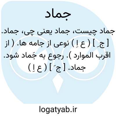 ( اسم ) ۱- موجود بیجان و بی حرکت مانند سنگ و چوب مقابل نبات حیوان. ۲- هر چیز بیجان بی حرکت. ۳- آنکه در خارج از جهان معانی و حقایق زندگی کند کسی که عاری از حیات روحانی است. ۴- معشوق ظاهری. ۵- آرزوهای مادی. جمع: جمادات.