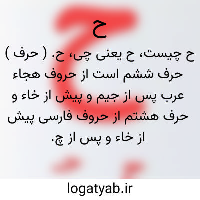 ح. ( حرف ) حرف ششم است از حروف هجاء عرب پس از جیم و پیش از خاء و حرف هشتم از حروف فارسی پیش از خاء و پس از چ. و آن از حروف مصمته ملفوظة ویکی از حروف ششگانه حلقیه است و آن را به حساب جُمَّل و هم حساب ترتیبی فارسی به هشت دارند و نام آن حاء است و آن را حاء حطی و حاء مهمله و حاء غیرمنقوطه نیز نامند و این حرف، خاص زبان عرب است و ح رمز «حینئذِ» و رمز «صح » و گاه رمز «حاشیه » و نزد محدثین، رمز تحویل از سندی به سند دیگر است آنگاه که حدیث را اسناد زیاده از یک باشد.