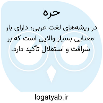 در ریشه‌های لغت عربی، دارای بار معنایی بسیار والایی است که بر شرافت و استقلال تأکید دارد. این نام به طور سنتی، لقبی بود که به زنان و دختران دارای جایگاه والا، به‌ویژه در میان خاندان‌های سلطنتی و اشرافی اطلاق می‌شد؛ بنابراین، معانی اصلی آن شامل «زن بزرگ و شریف»، «بانو»، و «خاتون» است. فراتر از منزلت اجتماعی، «حُرّه» به‌معنای «زن آزاد» یا «آزاده» نیز به کار می‌رود، که نشان‌دهنده جایگاه زنانی است که از بند بردگی رها شده و از استقلال ذاتی برخوردارند. این دوگانگی معنایی شرافت ذاتی و رهایی از قید سبب شده تا این نام در فرهنگ اسلامی و قرآنی، به‌ویژه برای دختران، انتخابی با وقار و معنوی تلقی گردد.