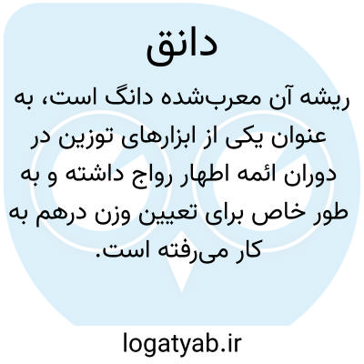 ریشهٔ آن معرب‌شدهٔ دانگ است، به عنوان یکی از ابزارهای توزین در دوران ائمه اطهار رواج داشته و به طور خاص برای تعیین وزن درهم به کار می‌رفته است. این واحد وزنی، اهمیت تاریخی و فقهی خود را به عنوان بخشی از سیستم‌های سنتی اندازه‌گیری در آن عصر حفظ کرده است. حد و معادل دقیق دانق از نظر فقهی مشخص شده است. دانق معادل وزنی برابر با هشت دانه جوِ متوسط تعریف می‌شود. از نظر نسبت‌بندی با واحدهای بزرگ‌تر، هر دانق برابر با یک ششم (1/6) از واحد درهم است. بر اساس این تعریف، نتیجه می‌شود که هر درهم معادل شش دانق خواهد بود. این تناسب دقیق، چارچوبی استاندارد برای معاملات و احکام فقهی مرتبط با وزن در آن دوره فراهم می‌آورد.