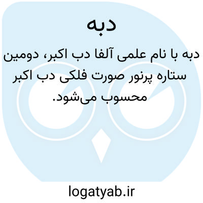 (یا: آلفا دُبّ اکبر) دومین ستارۀ درخشان صورت فلکی دبّ اکبر. نام آن برگرفته از عبارت عربی ظَهرالدُّب الاکبر به معنی پشت خرس بزرگ، و حاکی از موقعیت آن در دبّ اکبر است. اکنون، رصدکنندگان به راحتی دبه را در موقعیت یکی از دو ستارۀ لبۀ بیرونی بخش ملاقه شکل این صورت فلکی می یابند. غالباً دُبه و دیگر ستارۀ لبۀ بیرونی، مِراق، را دَلیلَیْن یا «راهنما» می گویند، زیرا خط فرضی وصل کنندۀ مِراق به دُبه تقریباً امتدادِ جُدَی (ستارۀ شمالی) را نشان می دهد. فاصلۀ دُبه از قطب شمال آسمانی کمتر از ۳۰ درجه است. از آن جا که دُبه به قطب نزدیک است، بیشتر رصدکنندگان نواحی نیمکرۀ شمالی زمین، در هر شب سال آن را در حال گردش به دور قطب شمال آسمانی می بینند. از این رو، دُبه ستاره ای پیراقطبی محسوب می شود. دُبه در شمال دور قرار دارد و از جنوبی ترین نقاط امریکای جنوبی، افریقای جنوبی، و استرالیای جنوبی دیده نمی شود. در دیگر نقاط و از مدارهای دیگر نیمکرۀ جنوبی و استوایی، دُبه از اوایل بهمن ماه تا اواخر فروردین ماه در آسمان شب مشاهده می شود. ستاره هایی نظیر دُبه، که با چشم غیرمسلح دیده می شوند، به کهکشان راه شیری تعلق دارند و بیشتر آن ها بسیار درخشان یا به نسبت نزدیک اند. دُبه ۱۰۰ سال نوری از منظومۀ خورشیدی فاصله دارد. درخشش ذاتی یا برون داد کلی نور آن با قدر مطلق (۰.۸-) برآورد می شود. قدر مطلقِ ستاره های درخشان کم و حتی منفی است. قدر این ستاره در حدود ۱۷۵ برابر برون داد نور خورشید است. از این فاصله، دُبه در آسمان شب زمین با قدر ظاهری۱.۷۹ می درخشد و یکی از ۵۰ ستارۀ درخشان از منظر زمین است. دمای سطحی دُبه حدود ۴۲۰۰ درجۀ سلسیوس و حدوداً بیست درصد کمتر از دمای خورشید است. این دما آن را به رنگ نارنجی درمی آورد. قطر دبه حدود ۲۵میلیون کیلومتر و هجده برابر قطر خورشید است. اخترشناسان با توجه به اندازه، دما، و ترکیب، دُبه را در ردۀ ستاره های غول نارنجی قرار می دهند. در چنین ستاره ای، بیشترِ هیدروژن بخش مرکزی سوخته، و سوختن هیدروژن در لایه های بیرونی آغاز شده است. ندیم بسیار کم فروغ تری، با نام دُبهB،به دور دُبه مدار می پیماید. به همین سبب، دُبه را به منزلۀ سامانۀ ستارۀ دوتایی می شناسند. دُبه B، کوتولۀ سفیدی با قدر ظاهری۴.۸ است، اما به قدری به ستارۀ دُبه A نزدیک است که تشخیص آن با تلسکوپ های غیرحرفه ای ناممکن است.