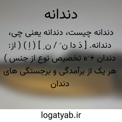 ( اسم ) ۱ - هر چیز شبیه بدندان مانند دندانه اره. ۲ - کنگره بالای دیوار و مانند آن. ۳ - مرکز هر حرف: دندانه ب ( ب ).