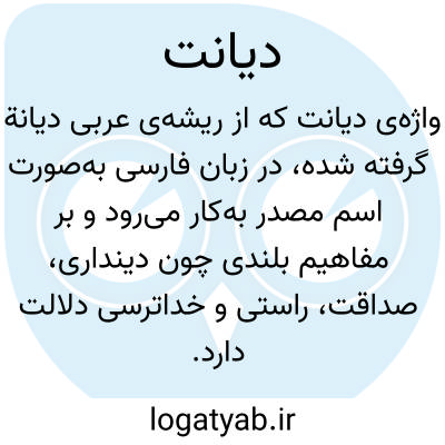 واژهی دیانت که از ریشهی عربی دیانة گرفته شده، در زبان فارسی بهصورت اسم مصدر بهکار میرود و بر مفاهیم بلندی چون دینداری، صداقت، راستی و خداترسی دلالت دارد. در متون معتبر فارسی، این واژه افزون بر معنای دینداری، بر عدالت، تقوا، پرهیزگاری، پارسایی و نیکی نیز اطلاق میشود. برای نمونه، در فرهنگ ناظمالاطباء، معادلِ دینداری کردن و متصف به راستی و درستکاری بودن آمده است.