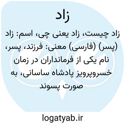 معنی: فرزند، پسر، نام یکی از فرمانداران در زمان خسروپرویز پادشاه ساسانی، به صورت پسوند و پیشوند همراه با بعضی نامها می آید و نام جدید می سازد مانند زادعلی، زادمهر، مهرزاد
