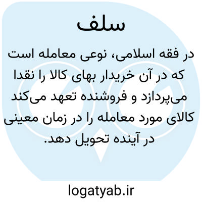 - بیع سلف و سلم؛ در فقه بیعی که بموجب آن خریدار وجوه مورد تعهد را از پیش بفروشنده می پردازد و فروشنده متعهد میشود که جنس مورد معامله را پس از انقضای مدت معین بخریدار تحویل دهد. ( فرهنگ فارسی معین ). نوعی از بیع که بها پیش دهند در وی چون سلم. ( منتهی الارب ) ( آنندراج ) ( ناظم الاطباء ):
