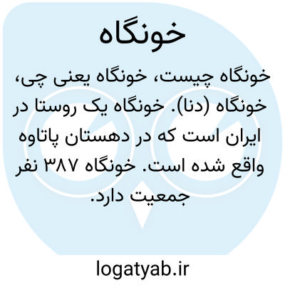 خونگاه (دنا). خونگاه یک روستا در ایران است که در دهستان پاتاوه واقع شده است. خونگاه ۳۸۷ نفر جمعیت دارد.