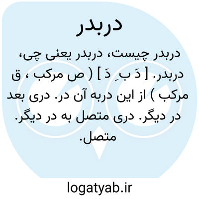 دربدر. [ دَ ب ِ دَ ] ( ص مرکب، ق مرکب ) از این دربه آن در. دری بعد در دیگر. دری متصل به در دیگر. متصل. پیوسته. مجاور. ( ناظم الاطباء ). || از درهای مختلف. از همه درها. خانه بخانه: