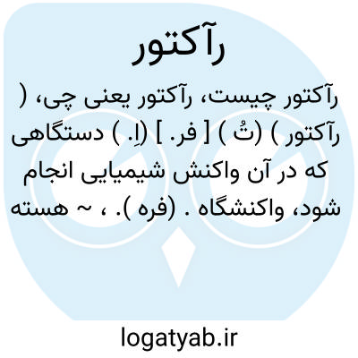 ( رآکتور ) (تُ ) [ فر. ] (اِ. ) دستگاهی که در آن واکنش شیمیایی انجام شود، واکنشگاه. (فره ).، ~ هسته ای دستگاه یا محیطی که در آن واکنش شکافت هسته ای به صورت مهار شده انجام شود، رآکتور اتمی.