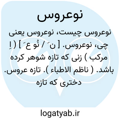 ( صفت ) دختری که تازه عروس شده: جمع: نو عروسان. یا نو عروس معنی. معنی تازه: (( نو عروسان بکر معنی را موکشان سوی جلوه گاه عیان. ) ) ( هاتف اصفهانی. وحید. چا. ۳ ص ۱۱۴ ) یا نو عروسان روز نوروز بهار ). درختان شکوفه کرده.