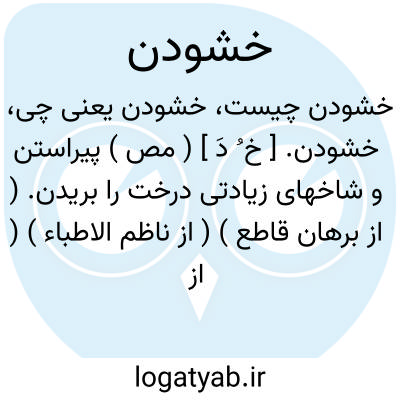 خشودن. [ خ ُ دَ ] ( مص ) پیراستن و شاخهای زیادتی درخت را بریدن. ( از برهان قاطع ) ( از ناظم الاطباء ) ( از آنندراج ). تمرید؛ خشودن و برگ دور کردن از درخت. خضد؛ خشودن خار درخت را و بریدن. قلف؛ خشودن. ( منتهی الارب ). || مجازاً تنریه کردن و تبرئه کردن. ( یادداشت بخط مؤلف ).