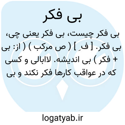 بی فکر. [ ف ِ ] ( ص مرکب ) ( از: بی + فکر ) بی اندیشه. لاابالی و کسی که در عواقب کارها فکر نکند و بی اندیشه و بی تدبیر. ( ناظم الاطباء ): فلان مرد بی فکریست؛ لاابالی و لاقید است. || خرسند. ( ناظم الاطباء ). رجوع به فکر شود.