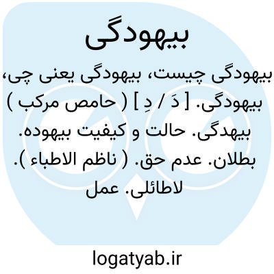 بیهودگی. [ دَ / دِ ] ( حامص مرکب ) بیهدگی. حالت و کیفیت بیهوده. بطلان. عدم حق. ( ناظم الاطباء ). لاطائلی. عمل لغو: