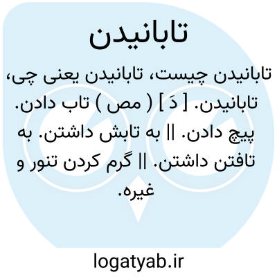 تابانیدن. [ دَ ] ( مص ) تاب دادن. پیچ دادن. || به تابش داشتن. به تافتن داشتن. || گرم کردن تنور و غیره.