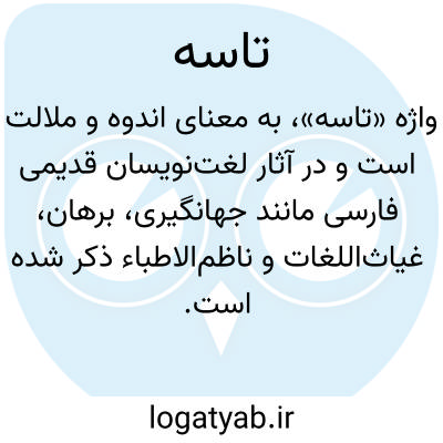 واژهٔ «تاسه» با تلفظهای [سَ / سِ]، به معنای اندوه و ملالت است و در آثار لغتنویسان قدیمی فارسی مانند جهانگیری، برهان، غیاثاللغات و ناظمالاطباء ذکر شده است. این واژه در فرهنگهای لغت سنتی بهطور مشخص به حالتی اشاره دارد که فرد دچار غم، اندوه یا پریشانی روحی میشود و احساس ناخوشایندی از لحاظ روانی تجربه میکند. در فرهنگ «مهذب الاسماء» نیز «تاسه» به معنای اندوه و ناراحتی آمده و در فرهنگ جهانگیری نیز با صورت «تاسا» ثبت شده است که با «تالواسه» همریشه است و میتوان آن را در کنار نمونههای مشابه در متون کهن فارسی یافت. همچنین در کتاب لغت فرس اسدی به شماره صفحهٔ ۴۴۰ آمده است که «تاسه» و «تلواسه» از یک خانوادهٔ معنایی برخوردارند و به حالات روحی ناآرام و پریشان اشاره دارند.