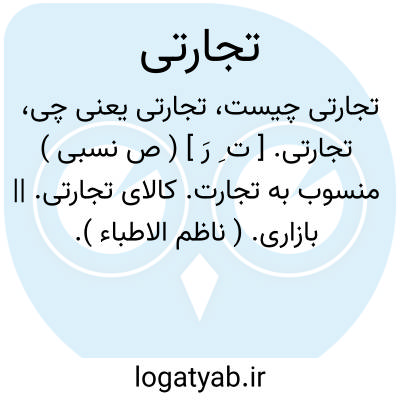( صفت ) منسوب به تحجارت مربوط بامور بازرگانی. توضیح در عربی طبق قاعده (( تجاری ) ) مستعمل است.ولی در فارسی بقیاس اباحتی و ملامتی (( تجارتی ) ) آورده اند.