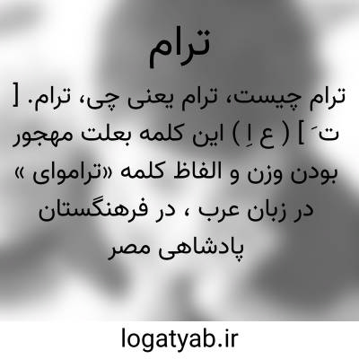 ترام. [ ت َ ] ( ع اِ ) این کلمه بعلت مهجور بودن وزن و الفاظ کلمه «تراموای » در زبان عرب، در فرهنگستان پادشاهی مصر بجای تراموای پذیرفته شده است. رجوع به نشوء اللغة و رجوع به تراموای شود.