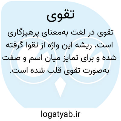 تقوّی در لغت بهمعنای پرهیزگاری است. ریشهٔ این واژه از تَقْوا گرفته شده و برای تمایز میان اسم و صفت بهصورت تَقْوی قلب شده است. در متون کهن، تقوّی بهعنوان پرهیز و ترس از خداوند تعریف شده و بر احتراز از هر آنچه انسان را به عقوبت الهی دچار میکند، دلالت دارد. چنانکه در آیۀ «هُوَ أَهْلُ التَّقْوی» آمده، مقصود آن است که خداوند شایستهای است که از عقاب او باید پرهیز کرد. در فرهنگهای مختلف، تقوّی به ترس از حقتعالی در پیامدهای کارها یا ترس از نفس که ممکن است آدمی را به ورطۀ هلاکت بیندازد، تفسیر شده است.