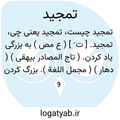۱ - ( مصدر ) ستودن تعریف کردن. ۲ - بزرگ داشتن ببزرگی یاد کردن. ۳ - ( اسم ) ستایش تقدیر. ۴ - بزرگداشت. جمع: تمجیدات.