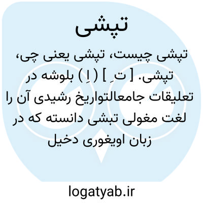 تپشی. [ ت ِ ] ( اِ ) بلوشه در تعلیقات جامعالتواریخ رشیدی آن را لغت مغولی تبشی دانسته که در زبان اویغوری دخیل شده بمعنی بشقاب گود: دیگر در دیار قراقوروم میگذشت [ قاآن ]، نظرش دردکانی پرعناب افتاد و طبعش بر آن مایل شد چون فرود آمد دانشمند حاجب را فرمود تا ببالشی از آن دکان عناب خرد، او برفت و تپشی عناب آورد. ( جامعالتواریخ رشیدی چ بلوشه ص 72 ). رجوع به بخش فرانسه کتاب ص 29 و رجوع به تبسی و تبشی شود.