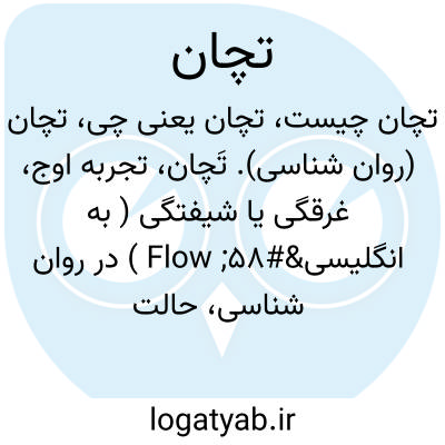 تچان (روان شناسی). تَچان، تجربه اوج، غرقگی یا شیفتگی ( به انگلیسی: Flow ) در روان شناسی، حالت ذهنی ویژه ای هنگام انجام یک کنش است که در آن کنشگر طوری روی یک کار متمرکز شود که در حس پایبندی کامل به آن کار و خشنودیِ فرایند انجام کار غوطه ور بشود. به سخن ساده تر، تچان وضعیتی است که کسی آن قدر در آنچه سرگرم انجام آن است، غرق شود که زمان و مکان پیرامونش را هم حس نکند.