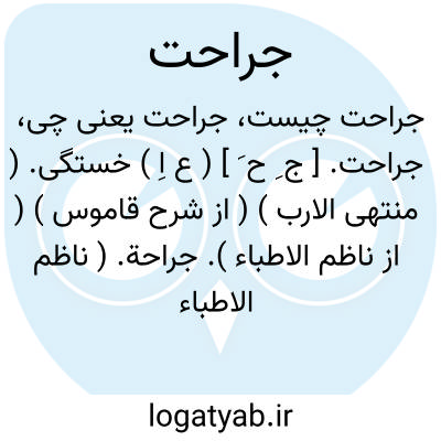 ( اسم ) ۱- زخم خستگی ریش. ۲- زخم کهنه ناسور. ۳- چرک ریم. ۳- ( صفت ) زخمی مجروح: ( ( مرغان دشت راز غم دل جراح است. ) ) ( نظیری ) یاجراحت بهم رساندن ( رسانیدن ). مجروح شدن زخمی شدن زخم برداشتن. جمع: جراحات جراج.