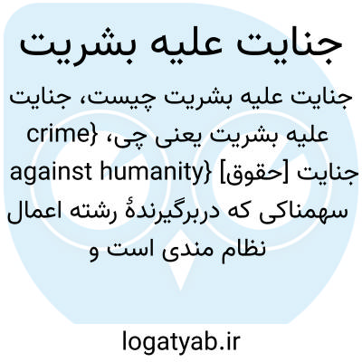 {crime against humanity} [حقوق] جنایت سهمناکی که دربرگیرندۀ رشته اعمال نظام مندی است و غالباً با پنهان کاری مقامات رسمی صورت می گیرد و وجدان جامعۀ بشری را متأثر می کند