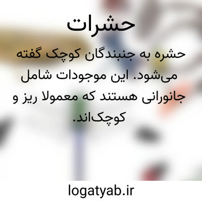 [ویکی فقه] حشرات جانوران ریز و نیز ساکن درون زمین هستند. از آن در بابهای طهارت، حج، تجارت، صید و ذباحه و اطعمه و اشربه سخن گفتهاند.