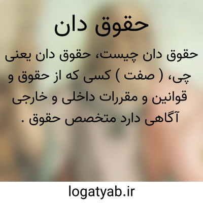 ( صفت ) کسی که از حقوق و قوانین و مقررات داخلی و خارجی آگاهی دارد متخصص حقوق.