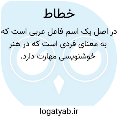 در اصل یک اسم فاعل عربی است که به معنای فردی است که در هنر خوشنویسی مهارت دارد. این واژه در منابع لغت‌نامه‌ای همچون «ناظم الاطبا» به صراحت به فردی اطلاق می‌شود که نگارشی زیبا و نیکو دارد و می‌توان او را استاد فن خط نیز خواند. تاریخچه این فن در فرهنگ ایرانی اسلامی بسیار غنی بوده است؛ چنانکه در «نوروزنامه» اشاره شده، در اقلیم عراق، قلم‌های مختلفی برای خط وجود داشته که هر یک ساختار، اندازه و تراش مخصوص به خود را داشته و بزرگی هر خط، نام و جایگاه ویژه‌ای برای خطاطان به ارمغان می‌آورده است. شاعرانی چون مولوی نیز بر اهمیت فن و هدف از نگارش تأکید کرده‌اند، آنجا که می‌گوید: «هیچ خطاطی ننویسد خط به فن / بهرِ عینِ خط نه بهرِ خواندن»، که نشان می‌دهد جوهره هنر خط، زیبایی بصری آن است نه صرفاً خوانایی.