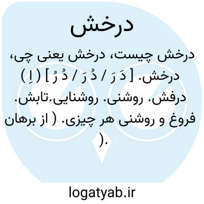 درخش. [ دَ رَ / دُ رَ / دُ رُ ] ( اِ ) درفش. روشنی. روشنایی.تابش. فروغ و روشنی هر چیزی. ( از برهان ). روشنی. ( غیاث ). تابندگی. ( آنندراج ). شعشعه. پرتو: