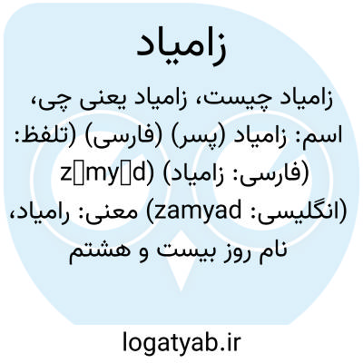 زامیاد. [ زام ْ ] ( اِ ) نام روز بیست و هشتم است از ماههای شمسی. ( برهان قاطع ) ( آنندراج ).نام روز بیست و هفتم از هر ماه شمسی. ( غیاث اللغات ). روز بیست و هشت است از ماههای شمسی و نیک است در این روز تخم کشتن و درخت نشاندن و عمارت کردن. ( فرهنگ جهانگیری ). آقای دکتر معین در کتاب روزشماری در ایران باستان آرد: روز 28 به زامیاد نامزد است. در اوستا زام و در پهلوی زمیک و در پارسی زمی بمعنی زمین و فرشته آن هر دو آمده. ( روزشماری ص 62 ). و در ص 65 از آن کتاب آرد: ابوریحان بیرونی نام این روز را در فهرست روزهای ایرانی زامیاد و در سغدی رام جید و در خوارزمی، راث یاد کرده زرتشتیان این روز را رامیاد خوانند -انتهی: