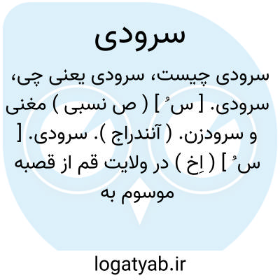 سرودی. [ س ُ ] ( ص نسبی ) مغنی و سرودزن. ( آنندراج ).