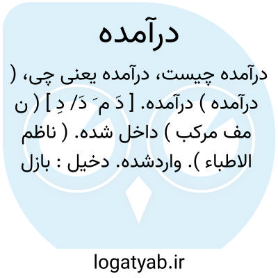 ( درآمده ) درآمده. [ دَ م َ دَ/ دِ ] ( ن مف مرکب ) داخل شده. ( ناظم الاطباء ). واردشده. دخیل: بازل؛ شتر هشت ساله به نهم درآمده. ( دهار ).