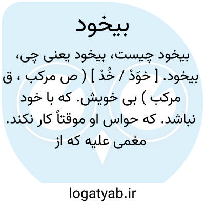 بیخود. [ خوَدْ / خُدْ ] ( ص مرکب، ق مرکب ) بی خویش. که با خود نباشد. که حواس او موقتاً کار نکند. مغمی علیه که از هوش شده باشد. بیهوش. مدهوش. از حال رفته.از حال طبیعی خارج شده که اشعار نداشته باشد. که حواس او از کار افتاده باشد. مقابل هشیار: