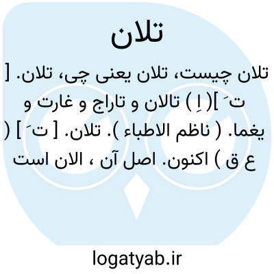تلان. [ ت َ ] ( ع ق ) اکنون. اصل آن، الان است و «ت » را بر آن افزودند چنانکه در تحین. ( منتهی الارب ). الان و اکنون. ( ناظم الاطباء ) ( از اقرب الموارد ). وصلینا کمازعمت تلانا؛ ای الان. ( اقرب الموارد ).