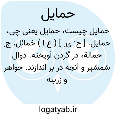 حمایل. [ ح َ ی ِ ] ( ع اِ ) حَمائِل. ج ِ حمالة، در گردن آویخته. دوال شمشیر و آنچه در بر اندازند. جواهر و زرینه که زنان در گردن اندازند و از زیربغل بدر آورند. ( یادداشت مرحوم دهخدا ):