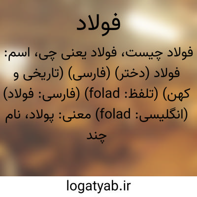 اسم: فولاد (دختر) (فارسی) (تاریخی و کهن) (تلفظ: folad) (فارسی: فولاد) (انگلیسی: folad)