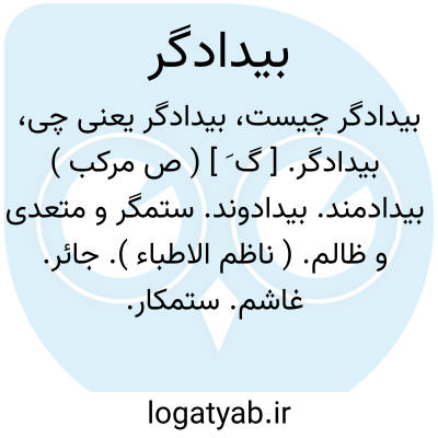 بیدادگر. [ گ َ ] ( ص مرکب ) بیدادمند. بیدادوند. ستمگر و متعدی و ظالم. ( ناظم الاطباء ). جائر. غاشم. ستمکار. غشوم. متعدی. قاسط. ستم پیشه. جفاکار. جفاپیشه. طاغیه. ( یادداشت مؤلف ). ظالم و ستمکار لیکن موافق قاعده نادادگر باید چه دادگر گوئیا صیغه فاعل است و سلب آن با لفظ «نا» شود چنانکه سلب وصف جاهل به «ناجاهل » کنند نه «بی جاهل » مگر آنکه گفته شود که بیدادگر مرکب بمعنی ستم است یا مخفف بیدادی بهر حال بیدادگر بمعنی ستمگر باشد. ( از آنندراج ):